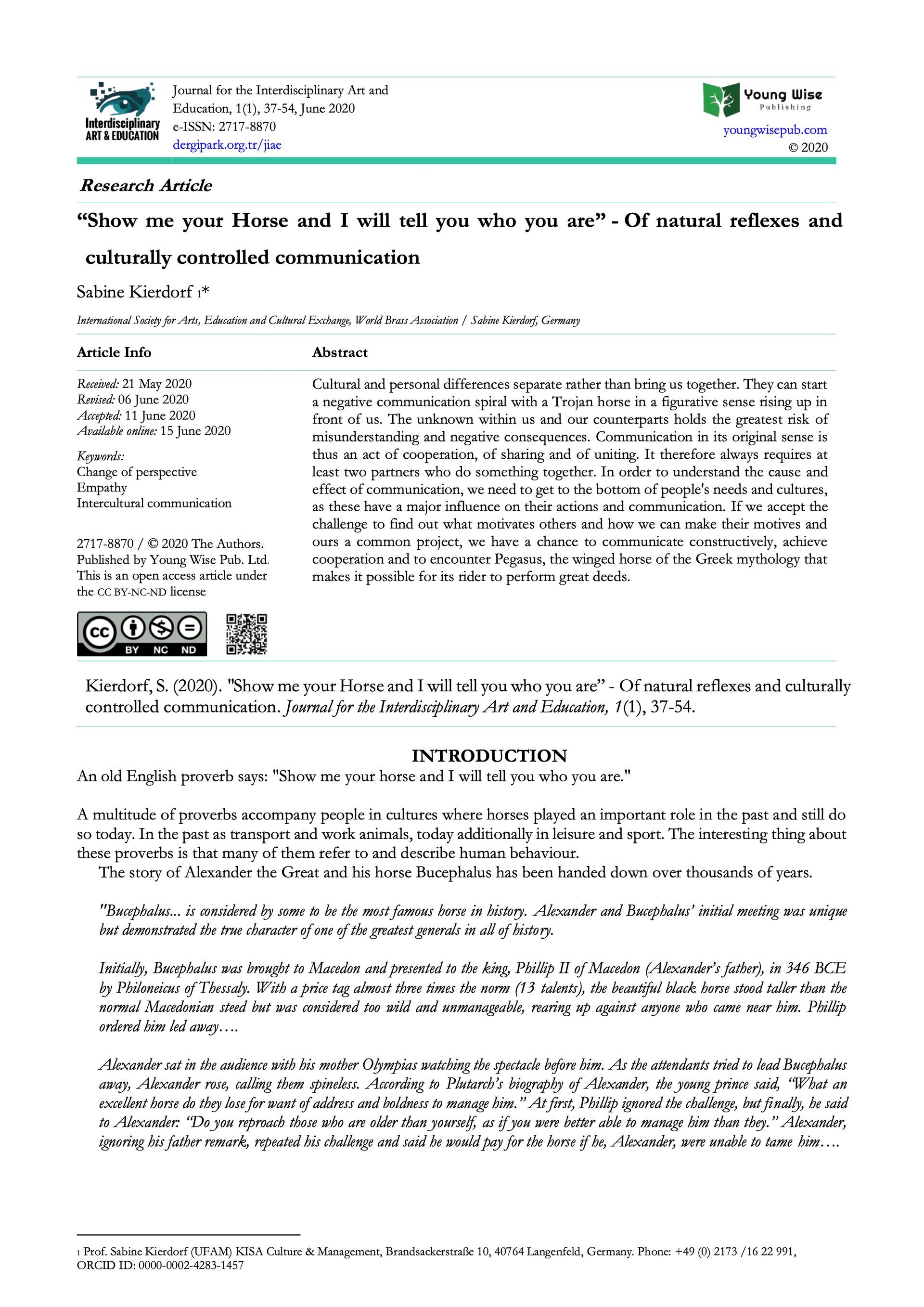 Journal for the Interdisciplinary Art & Education written by Sabine Kierdorf (English)